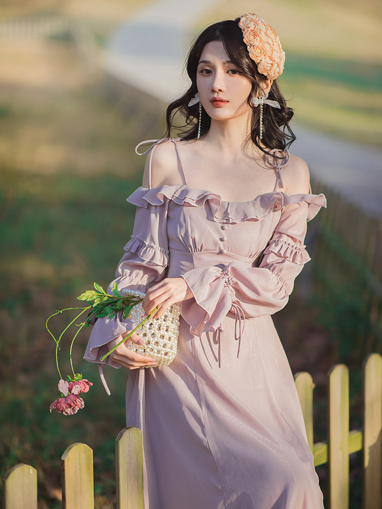 Discover the elegance of our Vintage French Sling Neck Dress in a charming lilac hue. This stunning piece is designed for the modern commuter who desires both style and comfort. Crafted from high-quality chiffon polyester, this dress offers a lightweight and breathable fit that is perfect for any occasion.