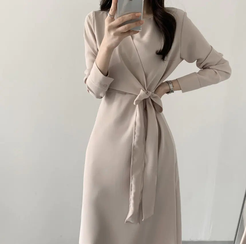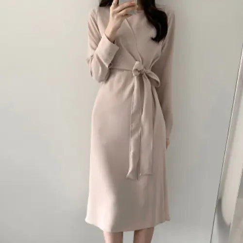 Korean Daejeon Long Slim Fit Vintage Dress for Women