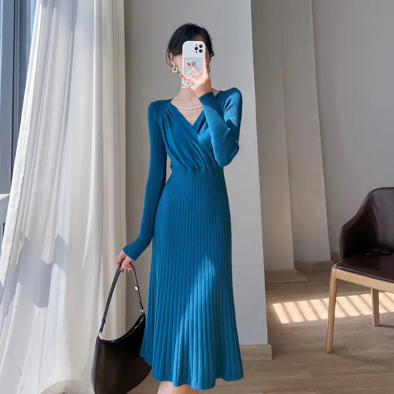 Step into the world of timeless elegance with our Women's Fashion Vintage Knitted Dress. This exquisite piece is designed for the modern woman who appreciates the charm of vintage style combined with contemporary comfort.